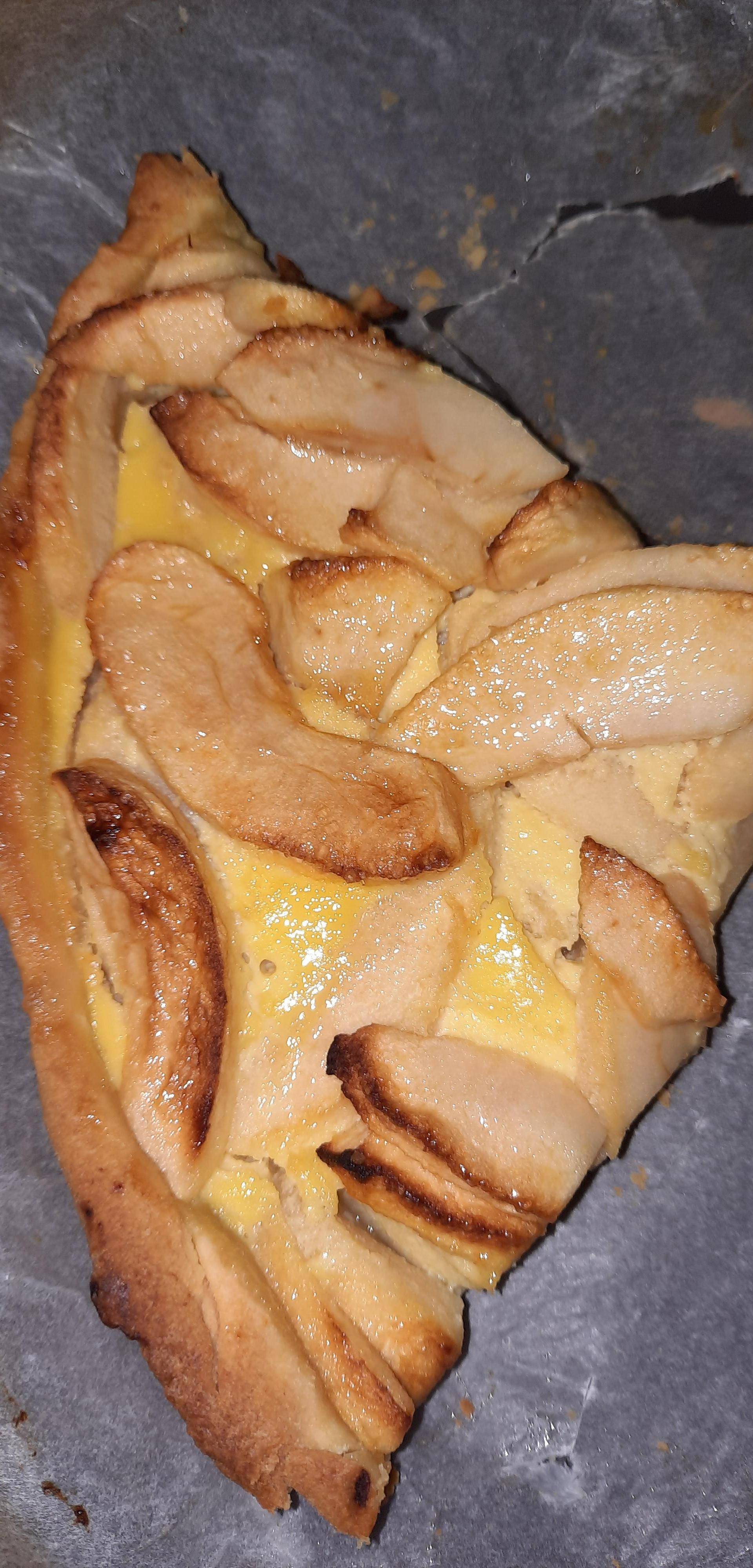 Meetre les pommes dans le moule sur la pate puis verser la préparation crème façon normande. Saupoudrer d'un peu de sucre ou de cassonade