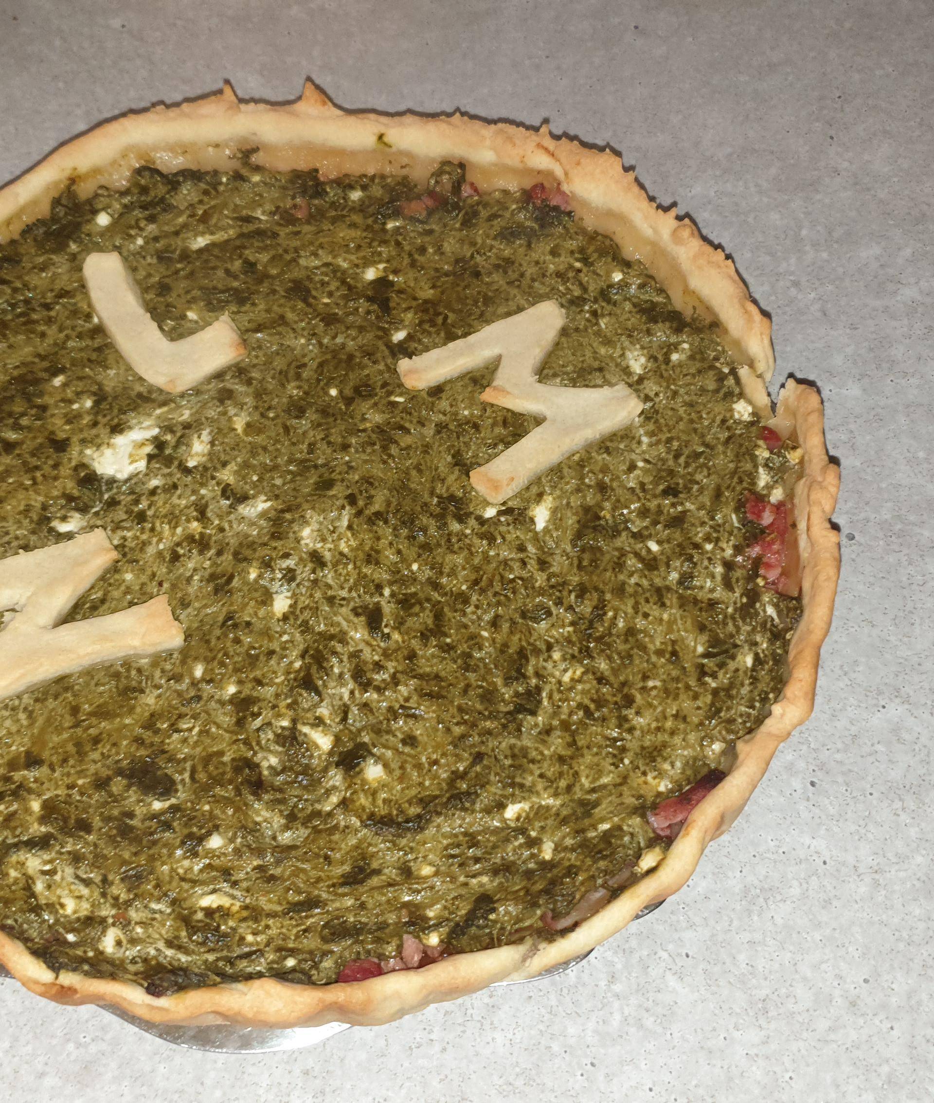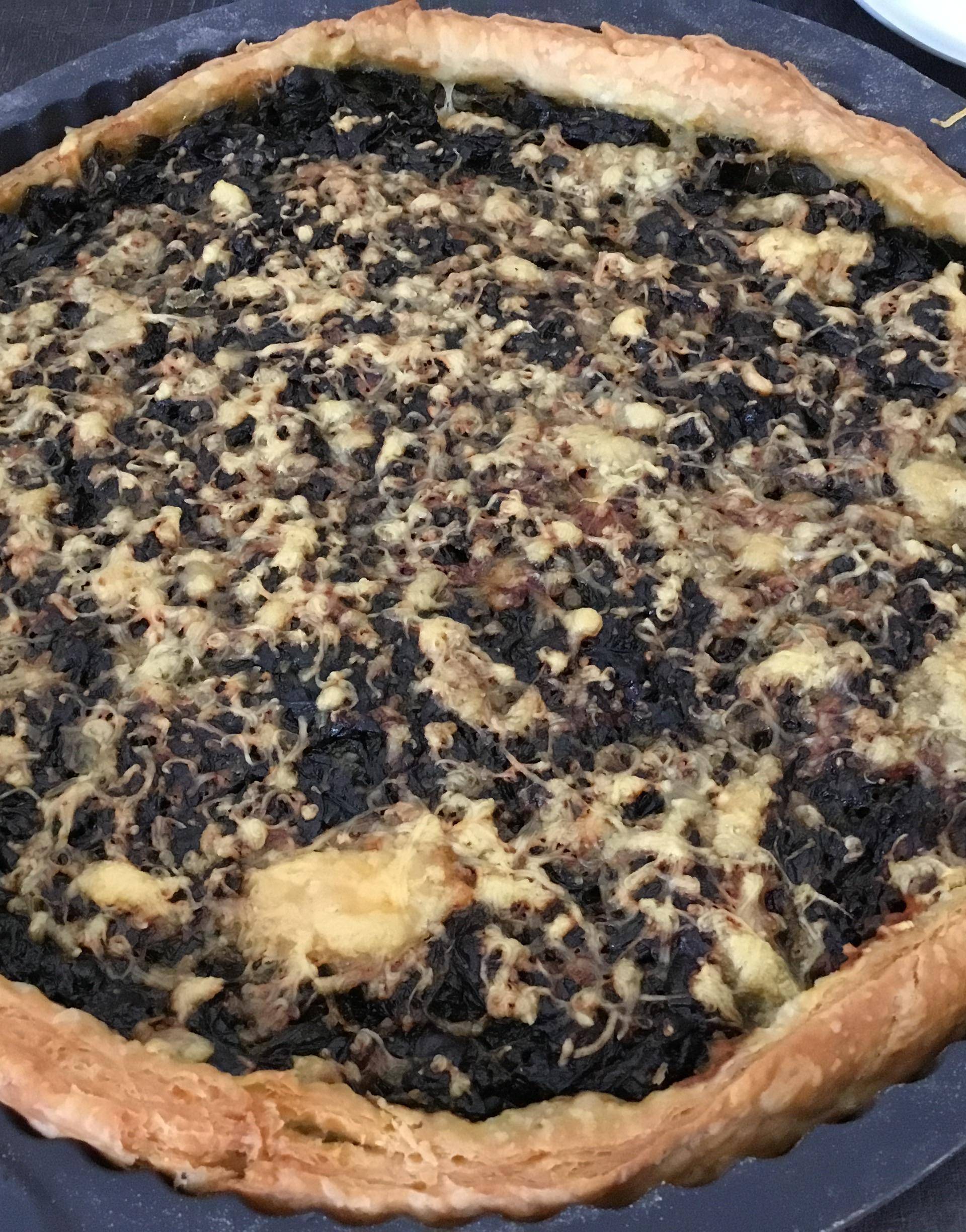 Mettre le mélange épinards/chèvre/bacon sur la pâte préalablement piquée, enfourner 25 minutes à 210. Bon appétit !