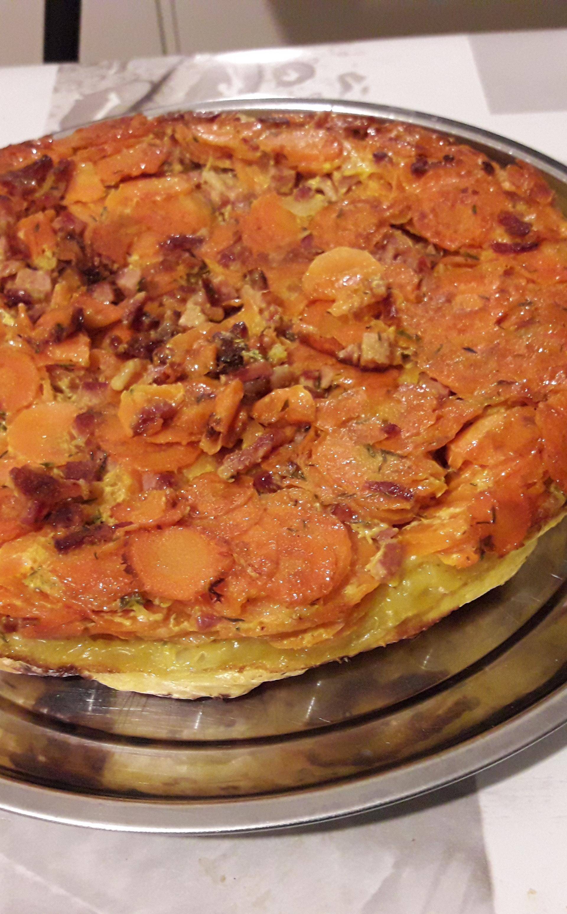 Vider les carottes dans un plat allant au four, poser la pate feuilleté dessus et faire cuire 30mn au four à 210°C