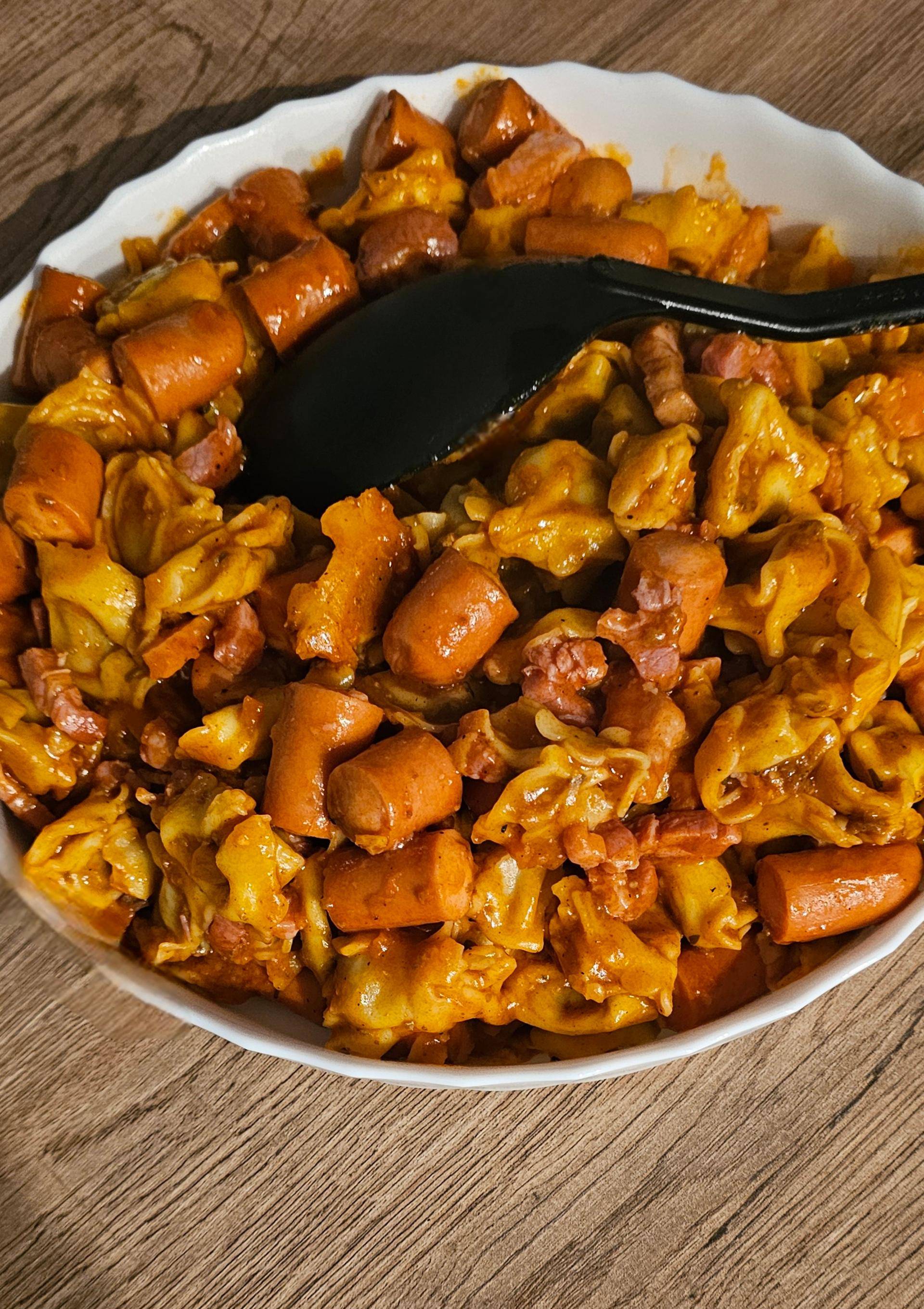Rincer votre cuve la remettre dans le cookeo mettre en rissolage moyen temps 5 minutes y ajouter l'huile d'olive, les lardons, les knackis que vous aurez coupé en petit morceaux et le pot de bouillon en gelée knorr. Mélangez le tout. Ajoutez les tortellinis.