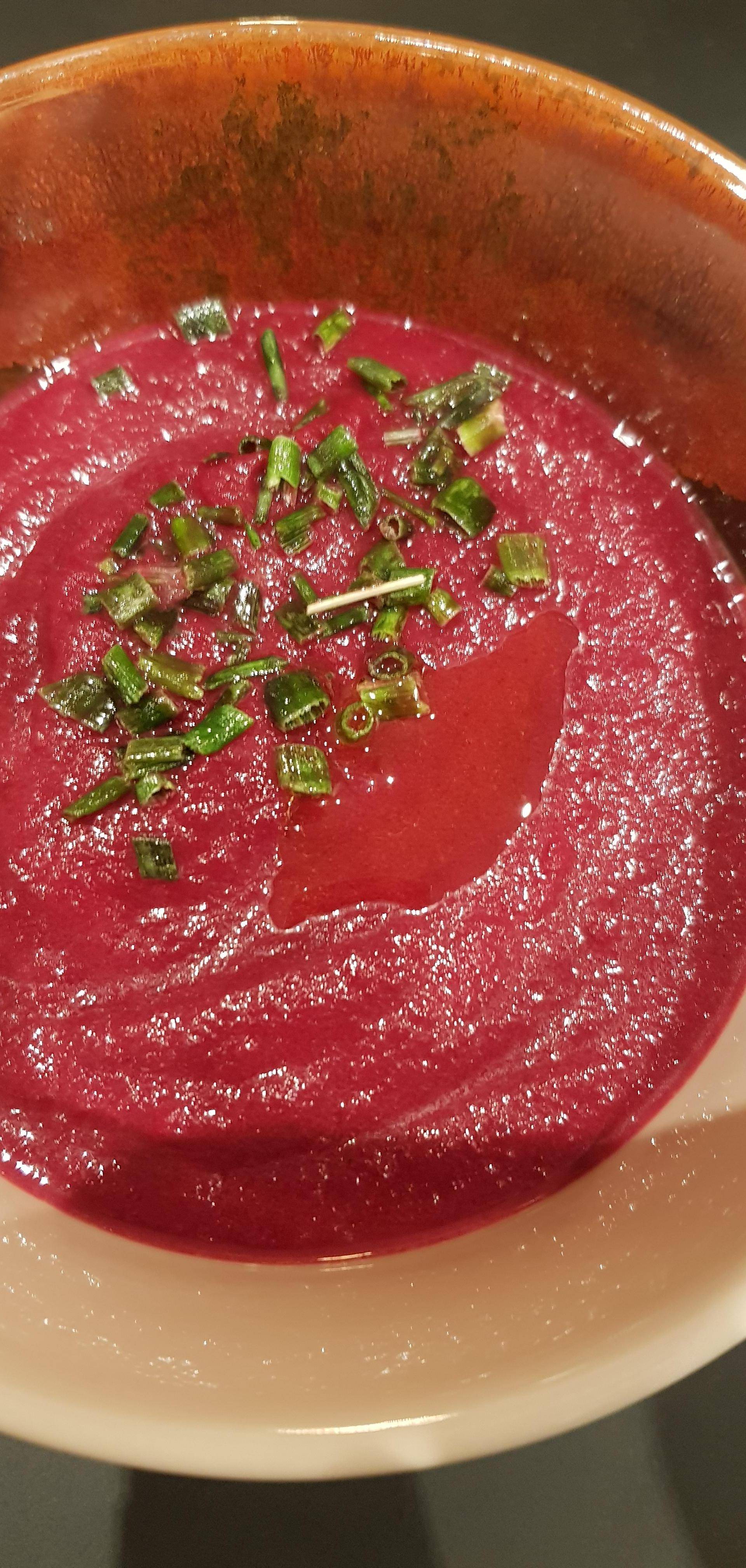 Éplucher et couper betteraves et pomme en gros dés. Ajouter dans la cuve et lancer le programme.