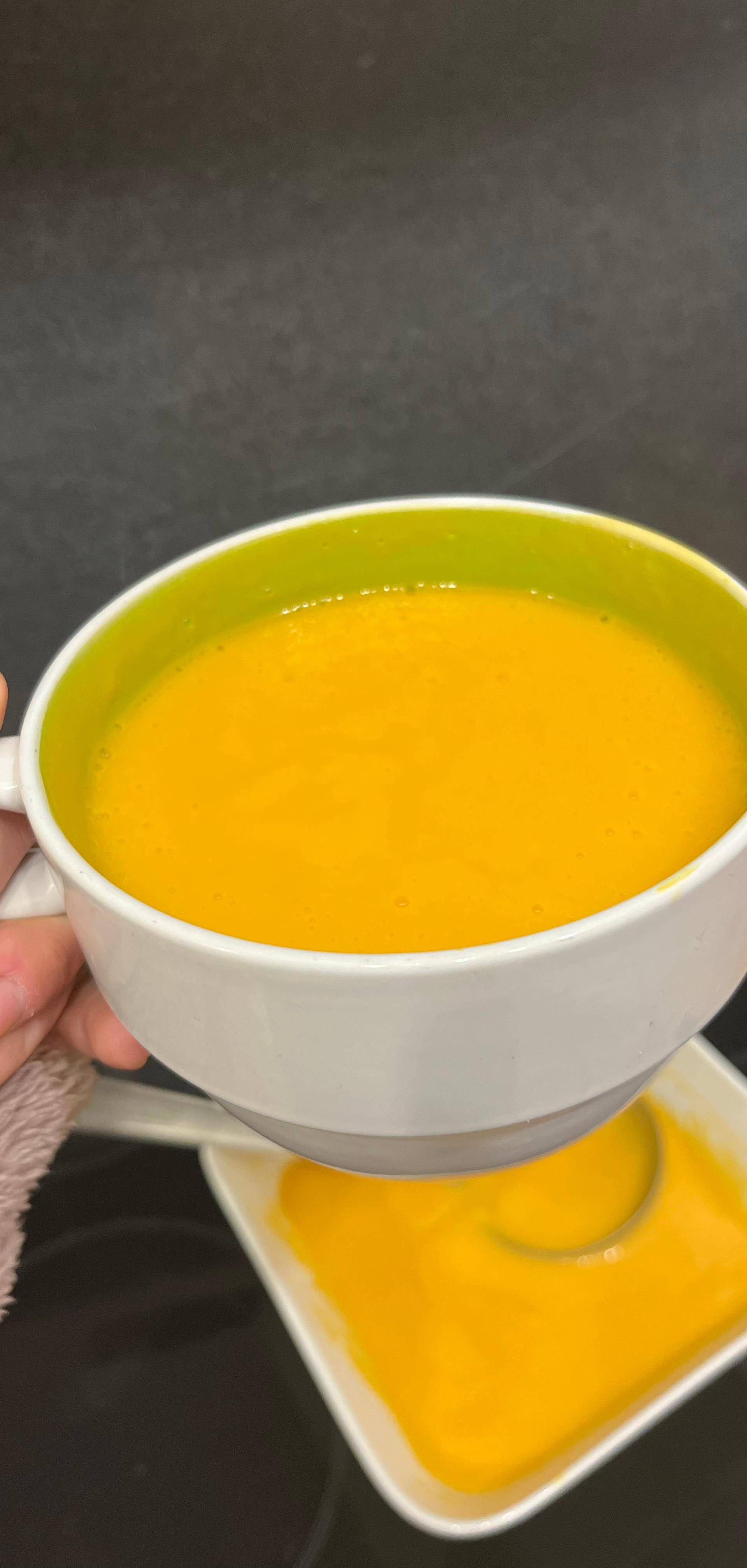 Une fois que tout est cuit, ajouter la vache qui rit avant de mixer le tout au blender