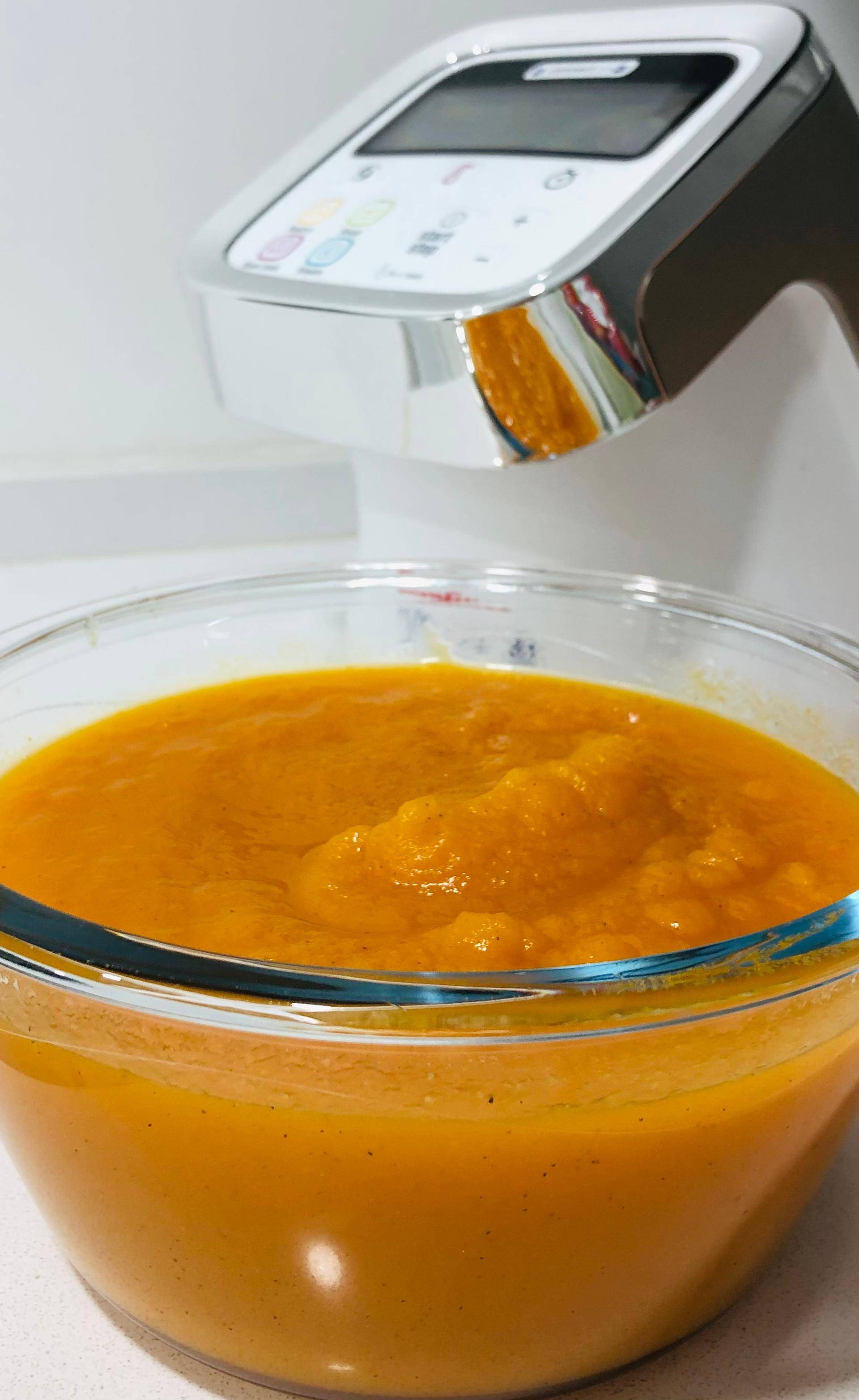 Placer les légumes, l’eau et le sel dans le robot et lancer le programme Soupe