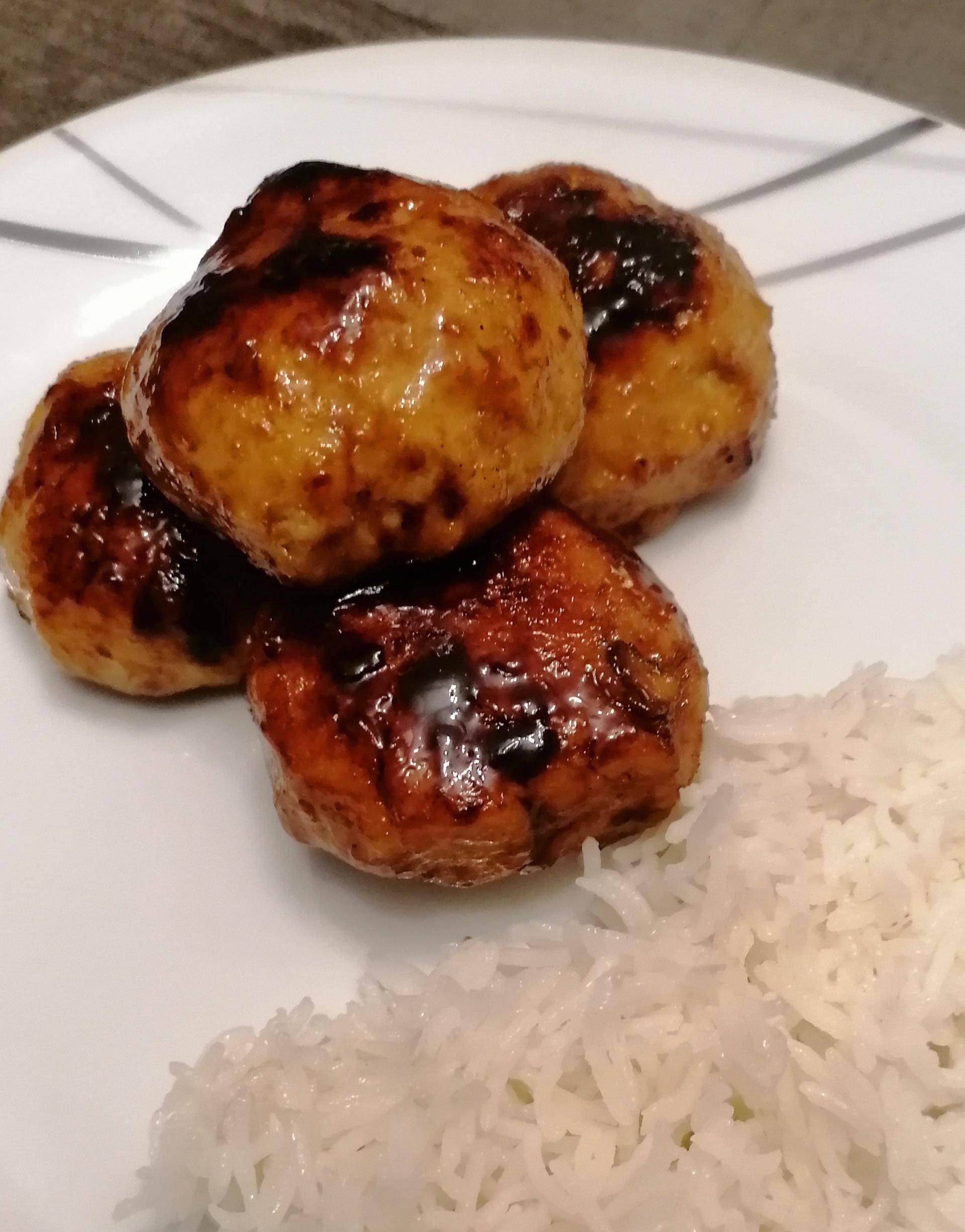 Une fois les boulettes cuites, les mettre de côté et nettoyer la cuve cookeo. Napper les boulettes de sauce yakitori, et les faire revenir dans le cookeo en MODE DORER environ 2 minutes. Il faut bien caraméliser le yakitori. Pour la présentation, piquer les boulettes sur les piques en bois.