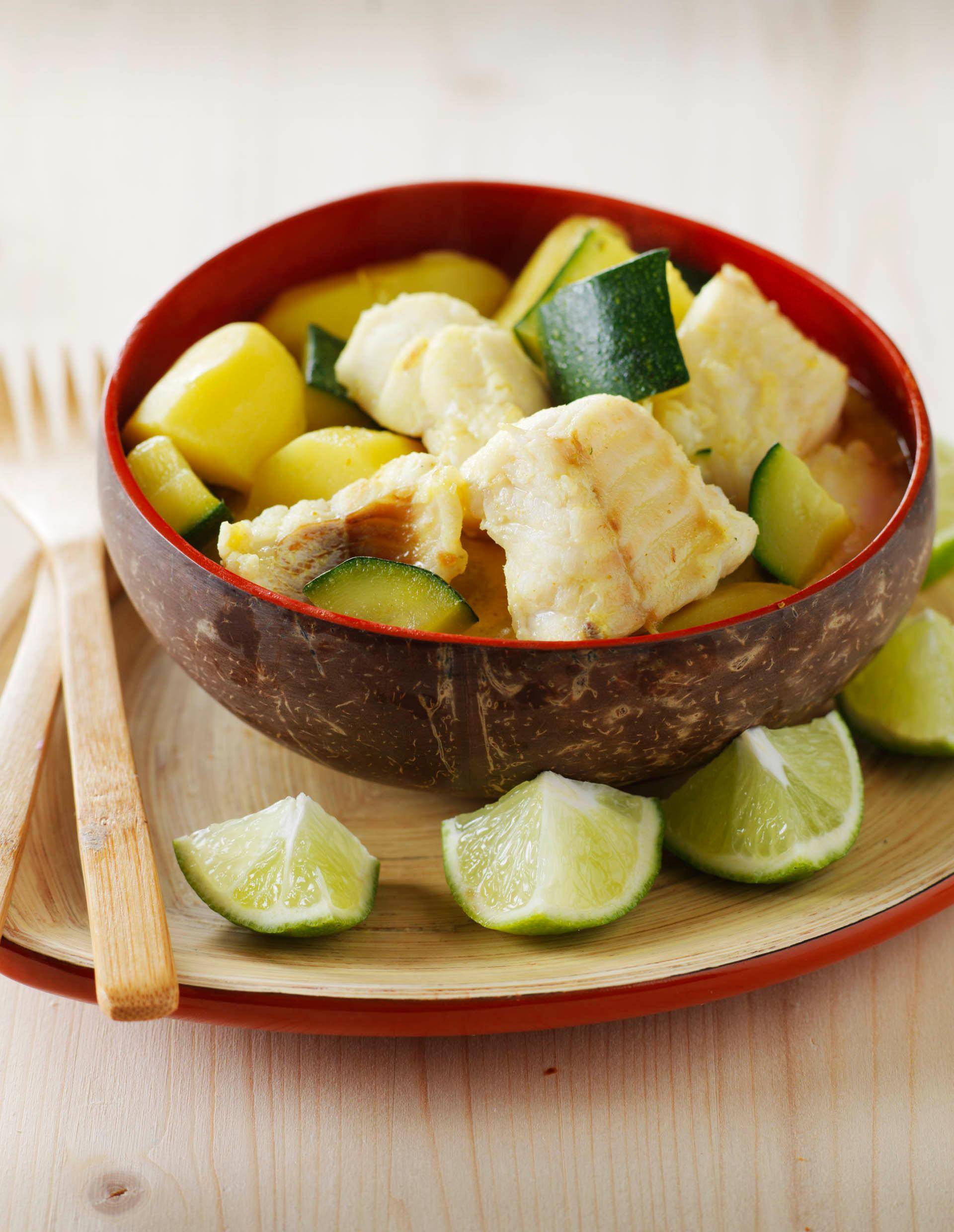Dans le bol du robot, ajoutez le bouillon, le lait de coco, le colombo, les feuilles de laurier et salez.