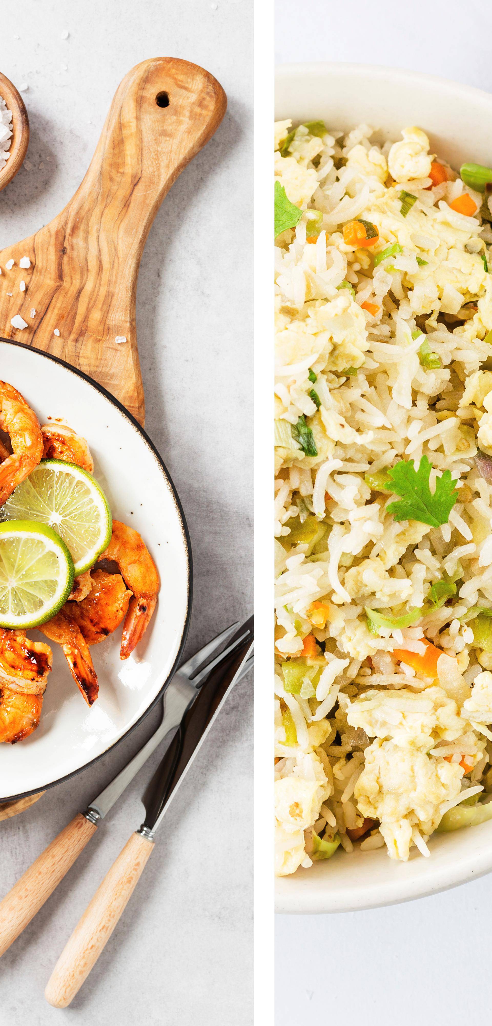 Servez les crevettes avec le riz. Accompagnez de la sauce piquante.
