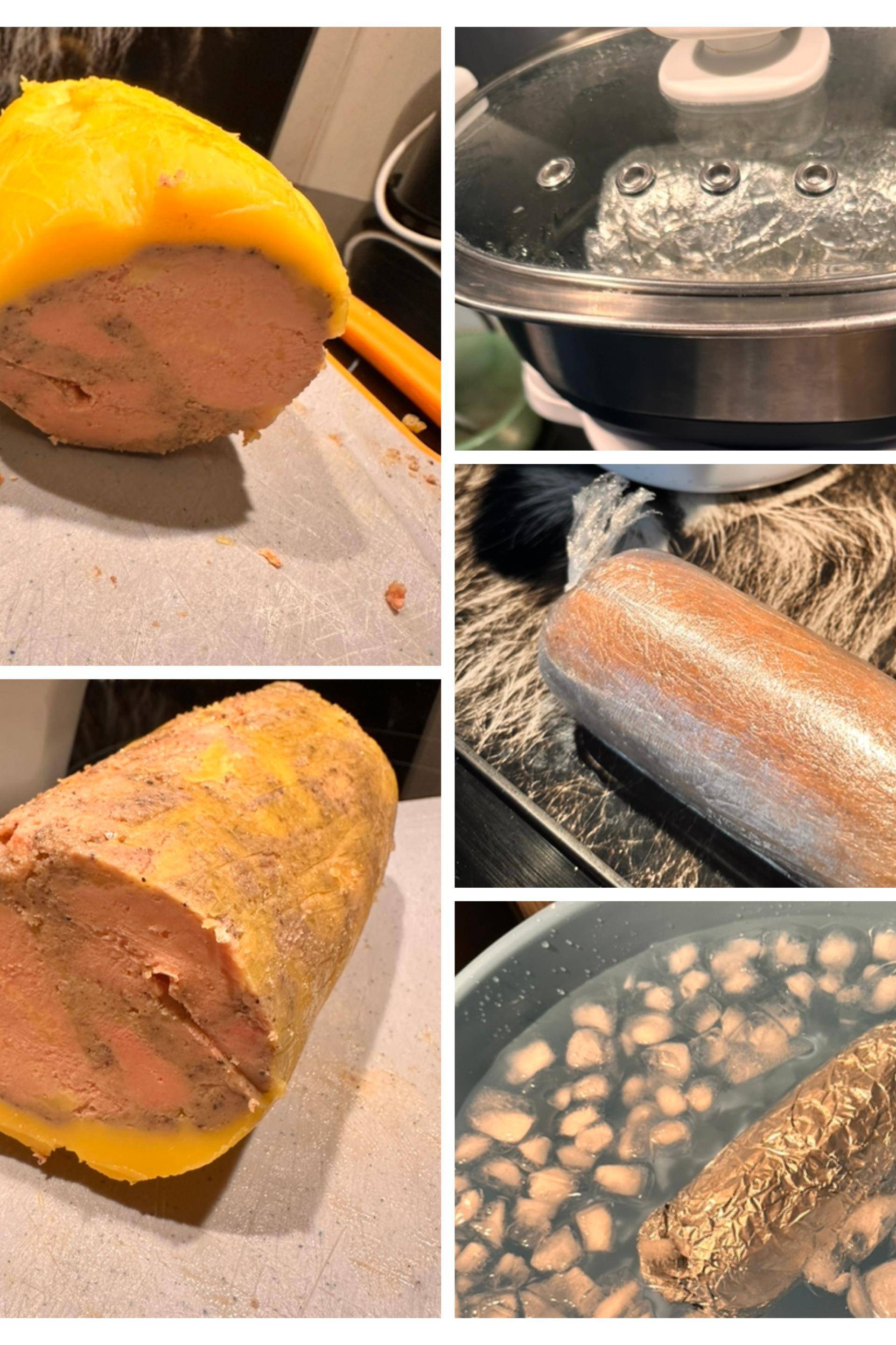 Enroulez-le de papier aluminium. Faites de même pour le foie gras restant.