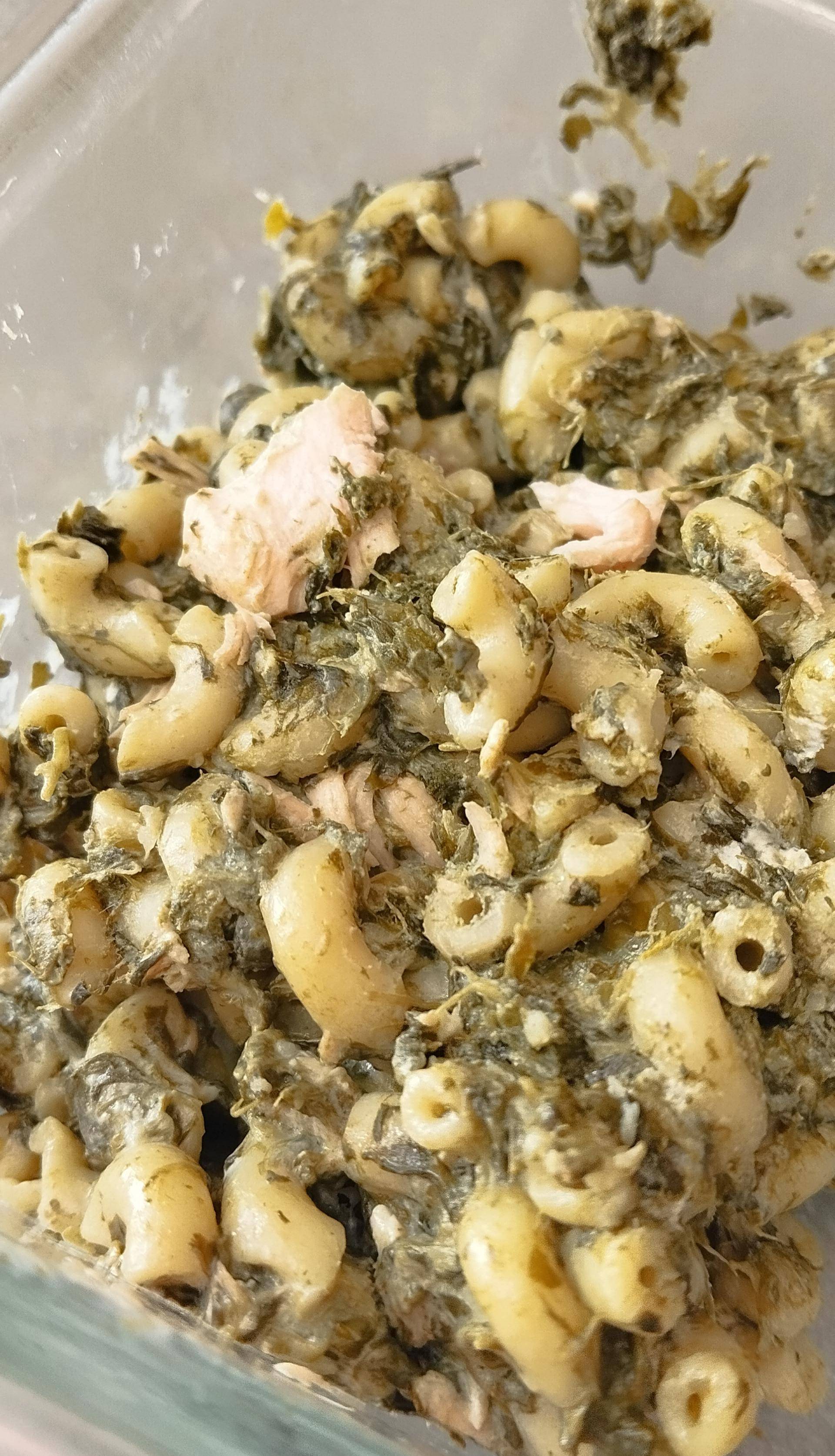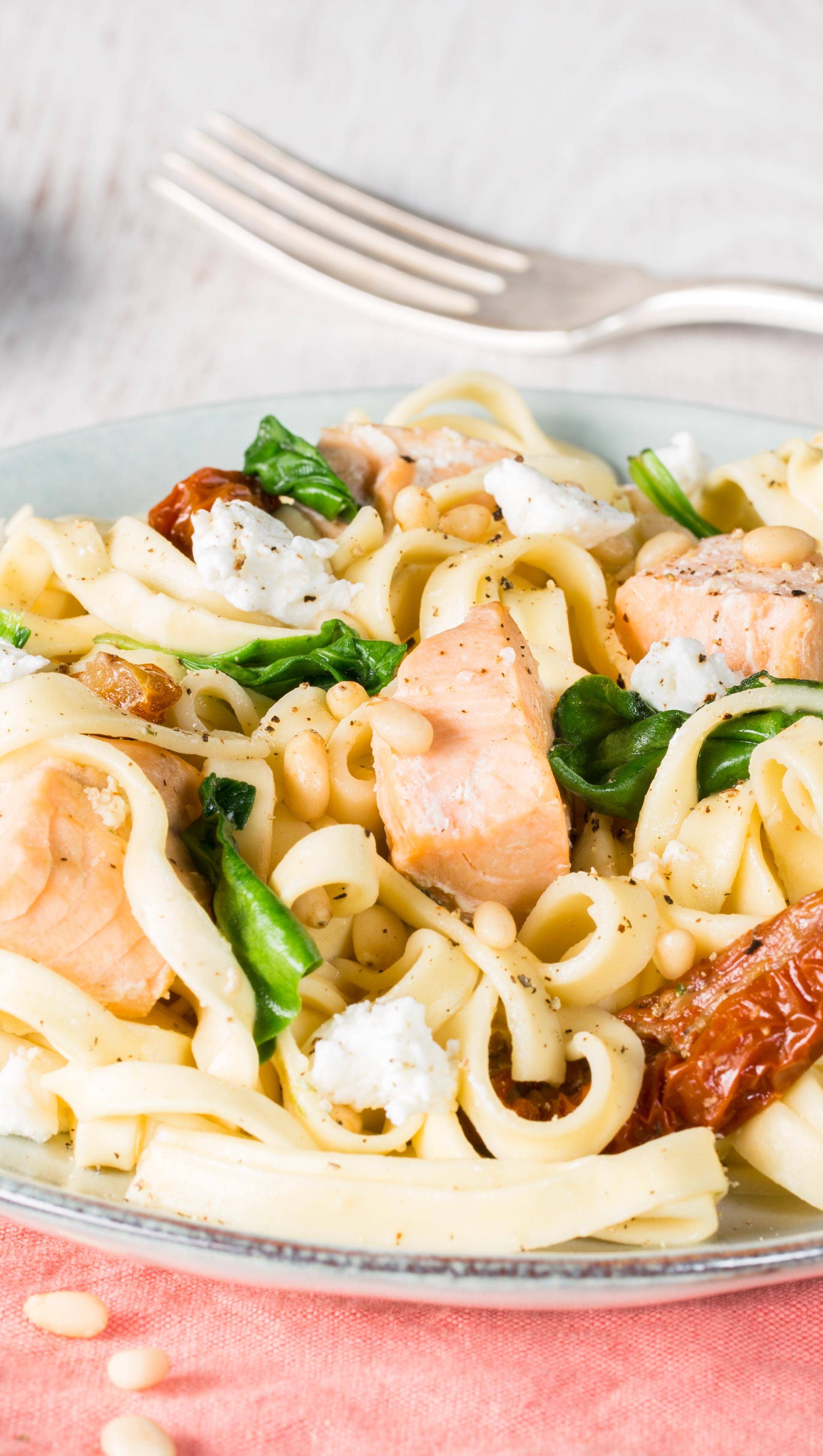 Couper le saumon surgelé en gros dés. Couper les tomates en deux. Placer tout dans la cuve sauf le chèvre et les pignons.