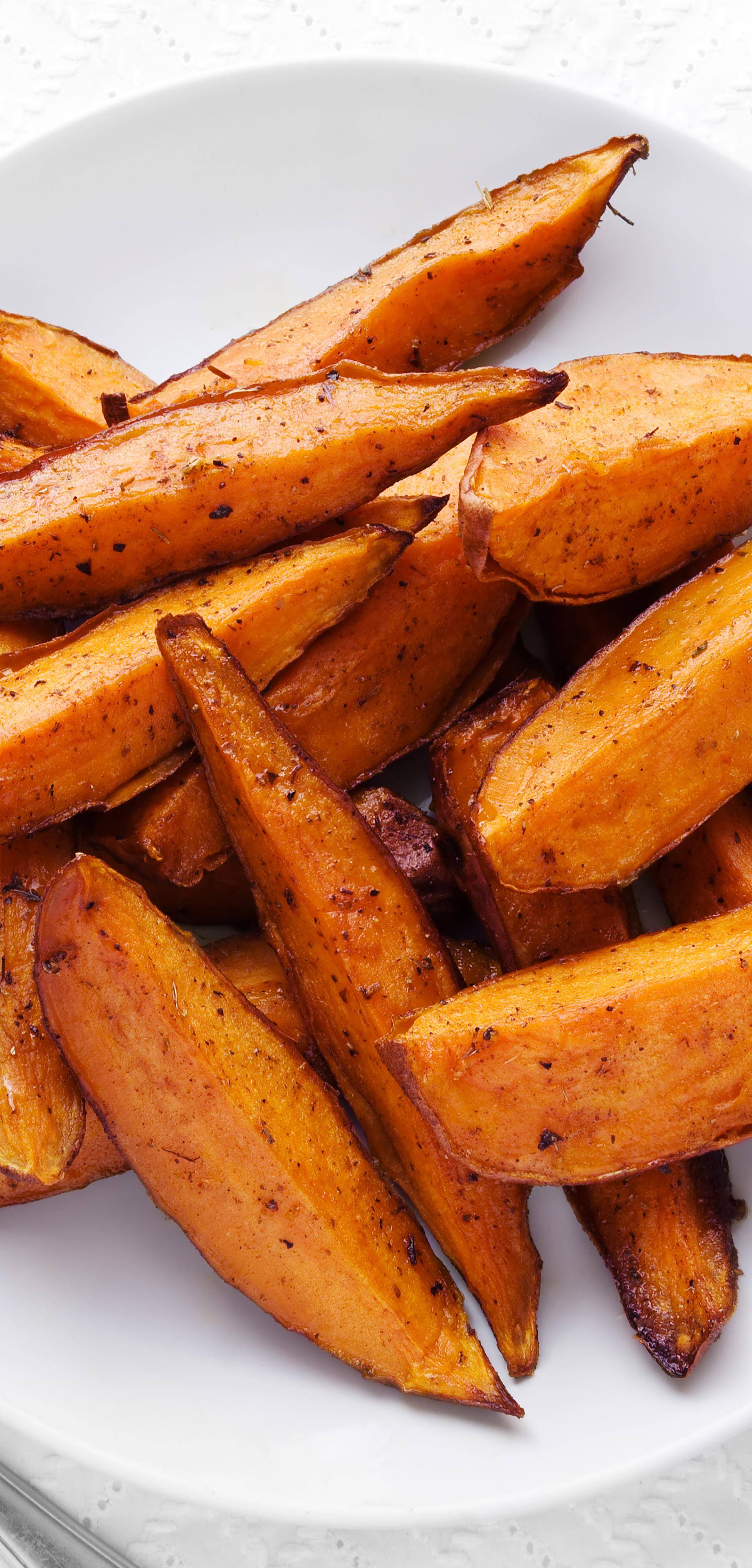Pelez les patates douces et coupez-les en quartiers. Dans un saladier, mélangez les patates douces avec l’huile d’olive, le parmesan et l’ail. Salez et poivrez.