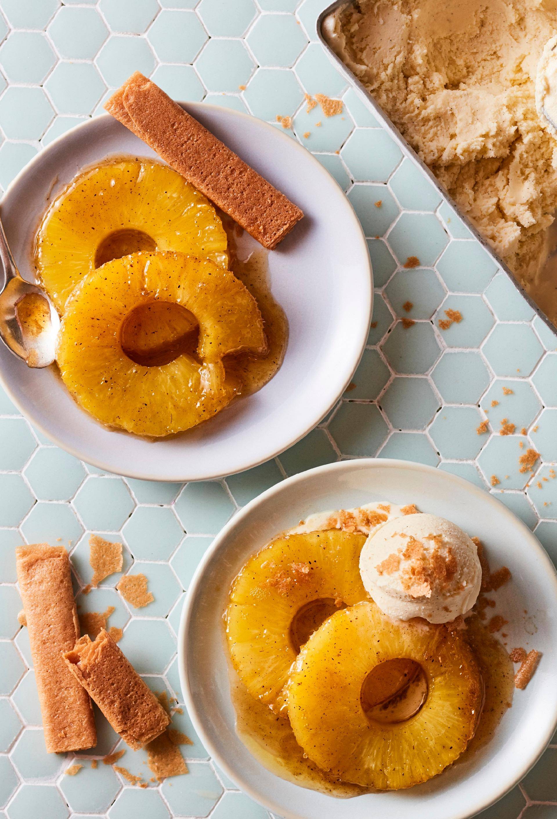 Salez, poivrez et frottez le rôti avec les herbes de Provence. Badigeonnez-le d'huile au pinceau puis entaillez-le de manière à pouvoir y glisser des demi-tranches d'ananas. Placez-le dans la cuve et lancez en mode VIANDE RÔTIE à 170°C. Après 30 min de cuisson de la viande, ajoutez les légumes dans la cuve tout autour de la viande, arrosez avec le reste d'huile, salez et poivrez puis poursuivez la cuisson jusqu'à la fin du mode.