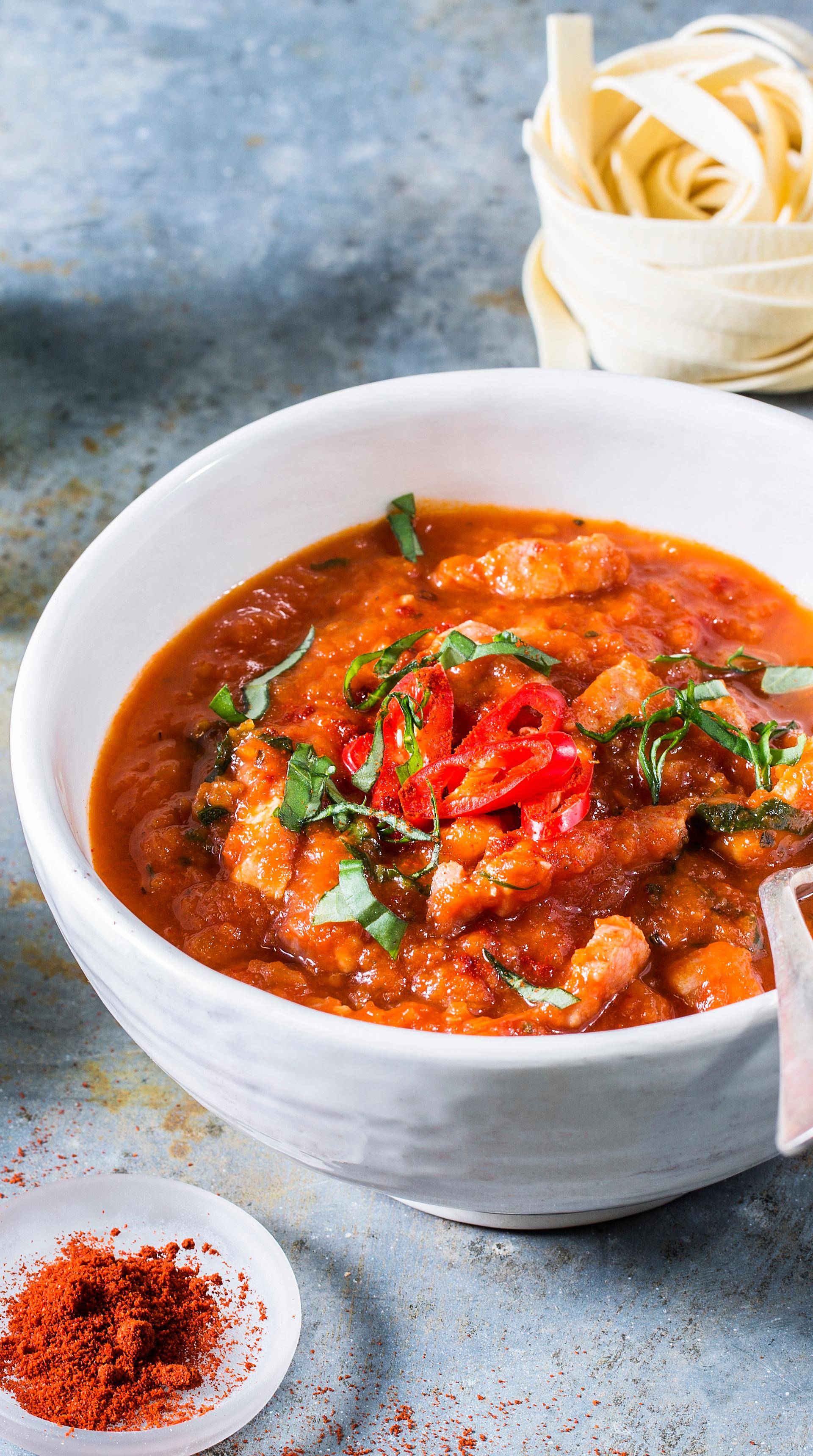 Ajoutez-les dans le bol du robot avec le concentré de tomates et la fécule en la saupoudrant. Verrouillez le couvercle sans le bouchon et appuyez sur 'Start'.
